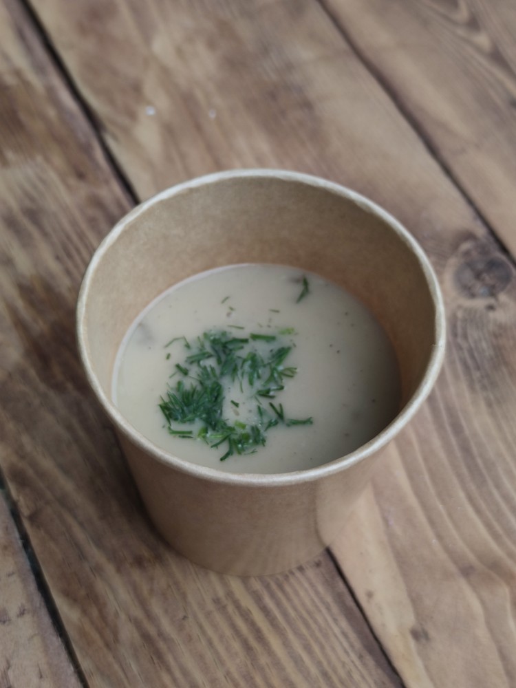 Борщ підбивний з хлібчиком зі смальцем (300 г)