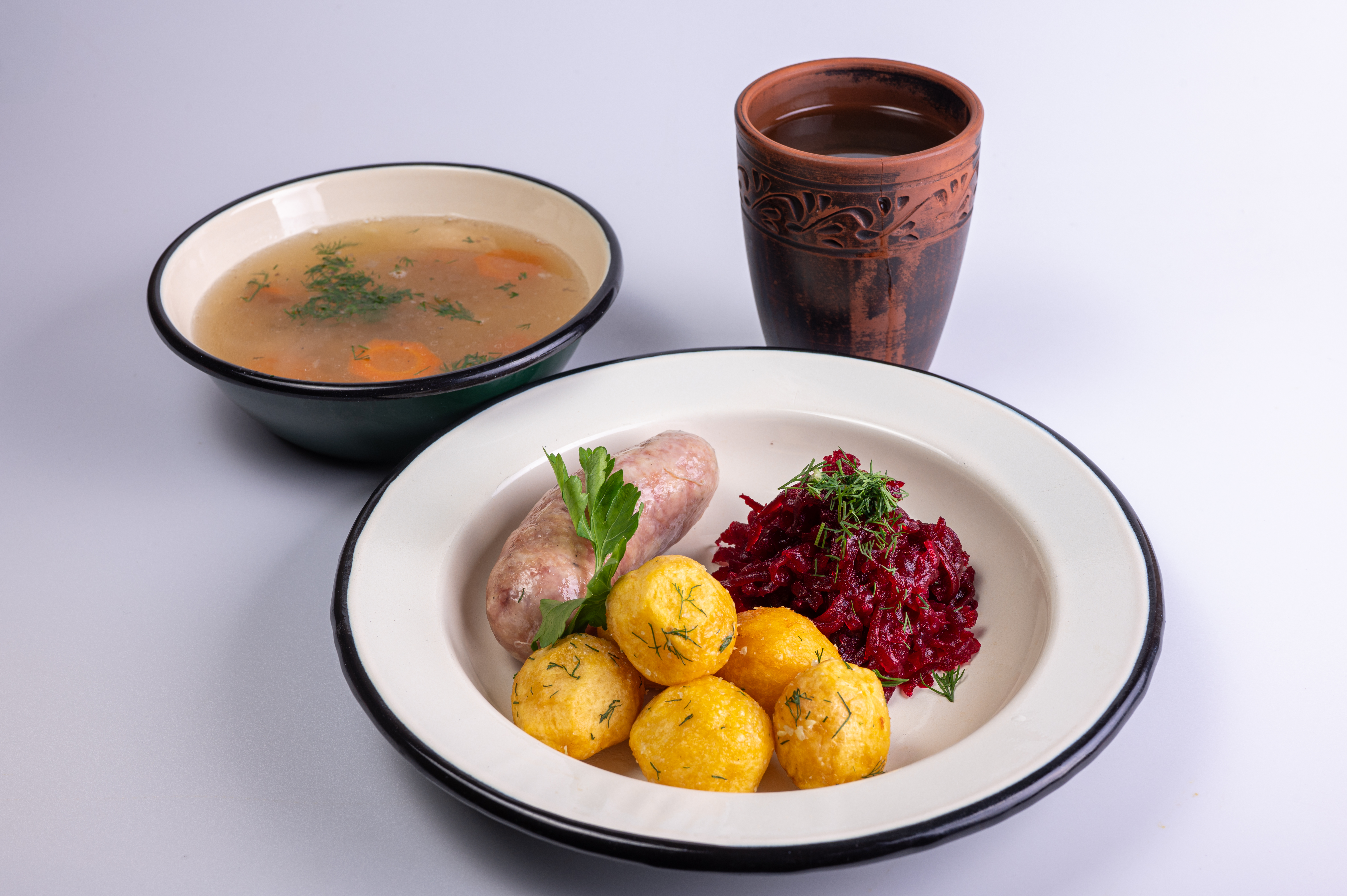 На щодень 1 (Борщ підбиваний, книш з картоплею та тушкованою капустою, узвар)